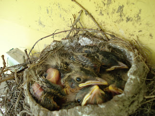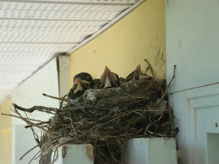 Just a little while ago I was over at my neighbour’s back porch where she also has a nest of four robins.