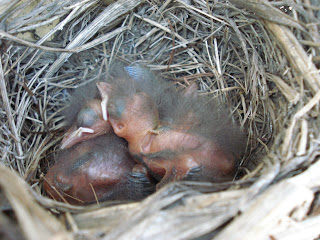 Here is proof that even if the grackles don’t seem to sit on the nest their babies still hatch! We were sure they were gonners until we noticed a lot of to-ing and fro-ing and hauled out the ladder, and Clint climbed up and took a quick pic. Looks like two and look just hatched. This nest is nestled in the wires that from the phone/hydro line and is reeeeally long as they must have dropped twigs down in the wires until it sort of looked like a nest!