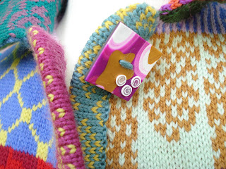 Andrea’s Jacket I’m overdue in posting these pictures of Andrea Orpana (my intermediate student) and her wonderful jacket made in my Haliburton class. Jacket Back She spent a lot of time afterwards finishing her beautiful creation. One thing I want Andrea and other machine knitters to become comfortable with is working in the loose ends…