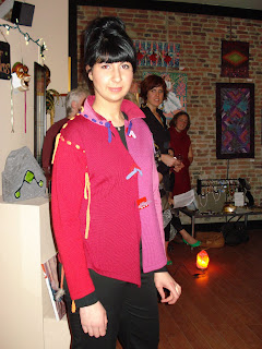 A small downer is losing precious sweaters. ( I sound like the Yarn Harlot in her marvelous calendar which I so enjoy reading each day) I lost two good wool ones… well I turned out my sweater shelves both in the house and studio. No luck and I really wanted to wear one to the workshop I’m attending in Ottawa this weekend. As I hadn’t seen them since returning from Chicago I surmised they must be in the basement with my show packing stuff and mannequins. Yes I finally found them at the bottom of the hanger box. Sometimes you just want to get out and on the road after a show no matter how you back things!!! Whew!! my babies are back.