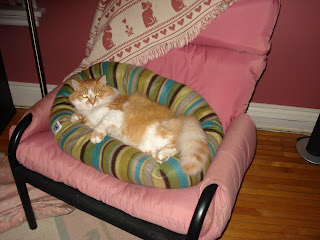 While we were away in Chicago another neighbour looked in on our cat/yak (they’re about the same size) and she bought him a bed, here he is sleeping in it but it’s the only time as, being a cat, he likes hard lumpy things (baskets, the stones on the driveway) or soft things that belong to other people. There can really only be one large puffy thing in his house and that would be him. He didn’t get into this bed of his own volition... he had help. Though he debedded sharpish.