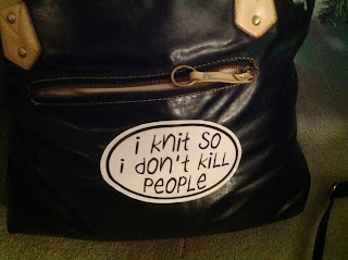 This delightful knitter said she was a bit worried when she took the bag through the airport check but she got through. Better than the other sticker…’ have sharp sticks and I know how to use them’!