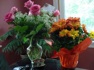 Then another dear friend, painter Vera Donefer, (mother to Laura Donefer – glass artist)stopped by with some beautifully coloured mums! How cheery these flowers are.