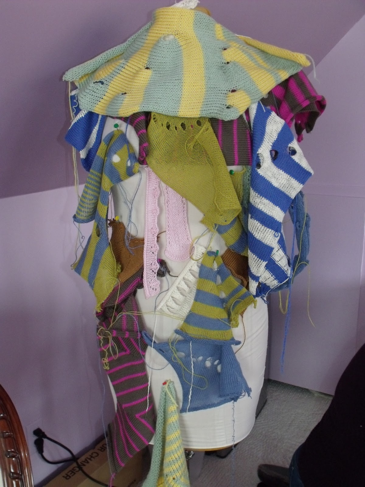 Here is my foamy dressed to the nines in all of our samples, I didn’t realize we had done so much in a da and a half….between eating, walking in the snow, brewing great coffee, exploring Niagara on the Lake’s downtown…. Gosh we were busy as we had our long quiet times each totally focused on what we were experimenting with then being able to share it with friends right away. Great for me as I always knit and work alone!