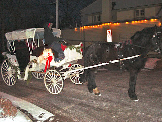 Horse drawn carriages around town, even past T’s house.