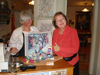 Susan at GG was very knowledgeable about the canvas and the yarns (even though she works in wine in the back!!) and had all the skeins of yarn and the needles chosen and packed up for Yvonne in no time. Then Susan gave Yvonne a quick lesson in the best stitch to use, and refreshed my memory as I haven’t needlepointed in years but loved it when I did. I seem to remember doing basket stitch which took a while.