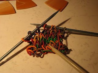 The group is headed up by my friend Georgia of Beek’s Lane Studio (check out her link over in my list in the side bar) and ages ago she made some cord with some Bake and Bend. I found it in my stash and she pulled out a couple of knitting needles she uses for tools and voila! the knitting you see here!!