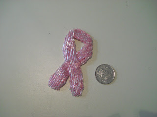 Judith made me a pink ribbon but we hadn’t got together so it arrived in the post last week and was a lovely surprise, it’s beautifully beaded, you can see the size up against a quarter.