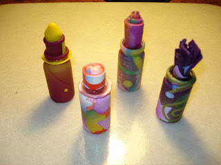 Here are some of the coloured Skinner method bits that Georgia made for her bottles. She had some larger bottles so they were easy to do and we had fun deciding on what kind of stoppers to make.