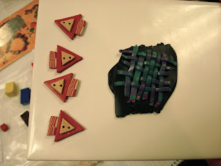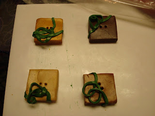 I seem to have collected three pasta makers and did demonstrations of just plain conditioning and mixing and also the Skinner method of blending two colours. Unfortunately the toaster oven I had been lent had no thermostat and many of the buttons over baked, even though I stood over the damned thing!!!