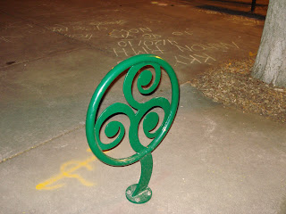 Loved this bicycle stand at the site of a children’s park and some benches for weary parents. I saw them in front of a couple of health food stores. Minneapolis is a big bike town, racks on the front of buses, bike spaces on the Light Rail I took into town from the airport. Lots of cyclists.