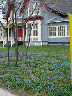 On one of my Spring power walks that I managed to squeeze in between the One of a Kind and Originals shows I noticed to my delight that the ‘Scilla House’ is still earning it’s name. Long story about this lovely house built in the late 1800’s but towards the end of the residence of the last occupant (youngest daughter I think) gardening was impossible for the elderly lady and her maid so the let it go and every Spring the front lawn was a carpet of beautiful blue scillas.
