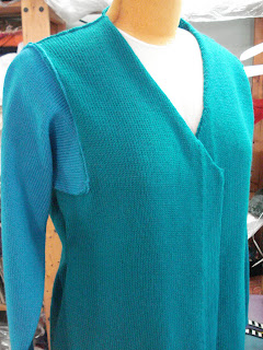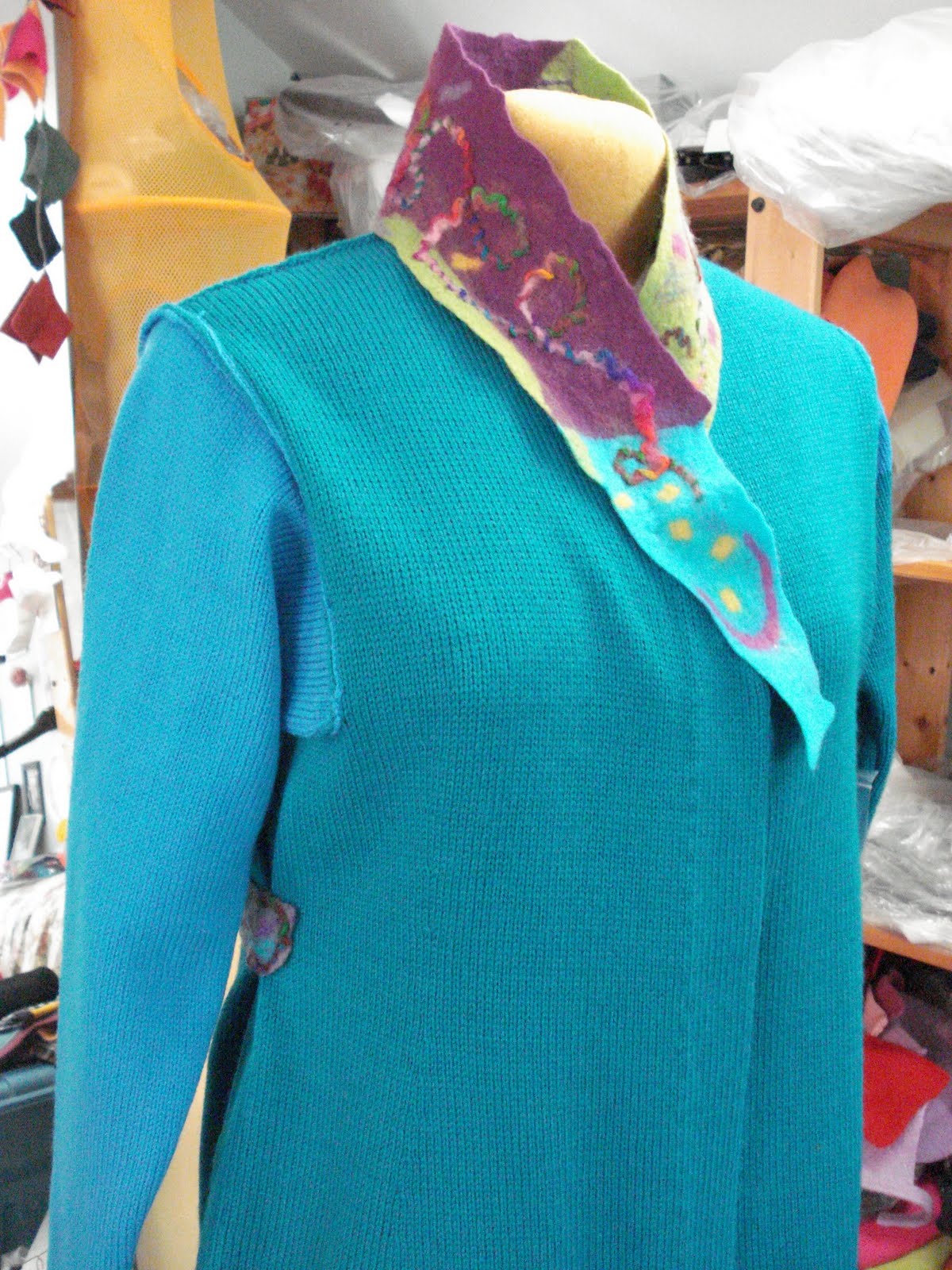 One interesting event was the sale of one of my Vivian ‘coats’ with a felted collar and accents. The client wasn’t completely comfortable with the funkiness of the collar and wanted a cleaner line so I said I’d make another collar and side accents.