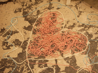 In keeping with the Valentine’s theme that storefronts are now adopting for next month (I’m never ready this early!!) they did this cute heart out of yarn spread on their rough concrete floor.