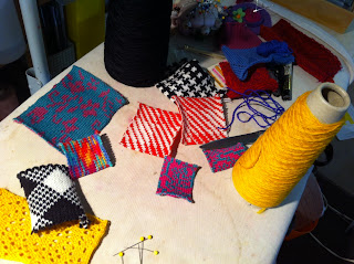 After the jacket is assembled I use test swatches and patches from other yarns and experiments to make the ‘patches’. I have soooo many I decided to implement them in this design which was partly inspired by the costume of Fagin in ‘Oliver’.