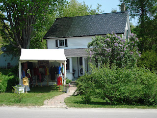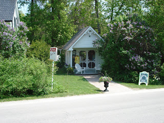 The studio tour in question is the ‘Up the Garden Path‘ studio and garden tour held along the St Lawrence River in the Thousand Islands. I’m the guest of my friend Margot Miller. She lives in Rockport and next to her little ‘cottage’ of a house is her shop the Summerhouse. Her house was called Hydrangea Cottage long before she acquired it, I just found out today, and it is surrounded by Hydrangea bushes and lilacs.