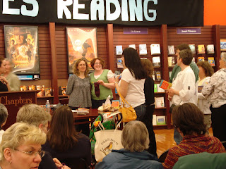 I was fortunate also because Stephanie’s Mum is best friends with my neighbour where Stephanie stayed, so when she couldn’t get home in time I was back up for getting Ms. MacPhee to Chapters on time. They were all set up with chairs from around the stores added to their stash of folding chairs, then women dragged chairs from the Starbucks!